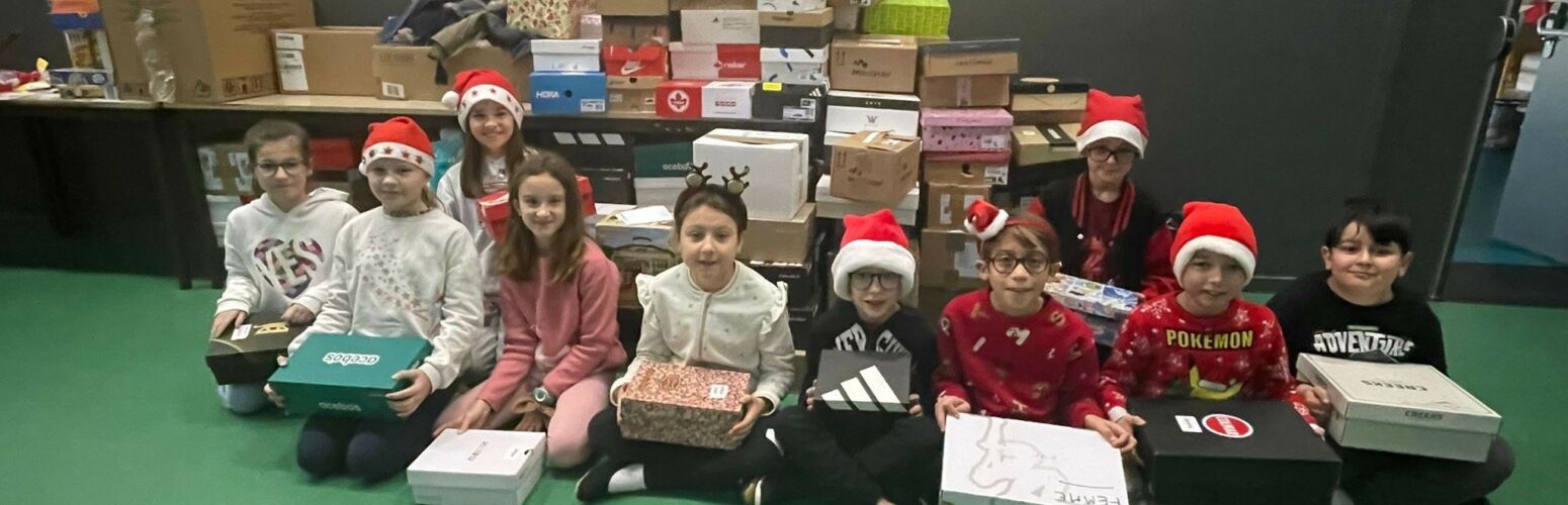 Durant la période de l’Avent, tous les élèves de l’école ont été encouragés à apporter des petites attentions (des accessoires chauds, des douceurs, des dessins, des mots doux, des produits d’hygiène, des jouets, des livres…) pour confectionner des boîtes solidaires.