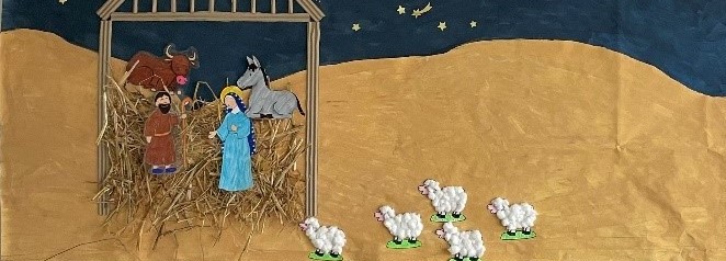 Chaque matin, les enfants de toutes les classes maternelles se retrouvent pour partager un moment tous ensemble pendant lequel nous chantons, ouvrons nos petits sacs de l’Avent et écoutons une histoire de Noël. Le sapin est décoré au fur et à mesure que nous ouvrons nos petits sacs et les personnages de la crèche prennent place au fil des jours.