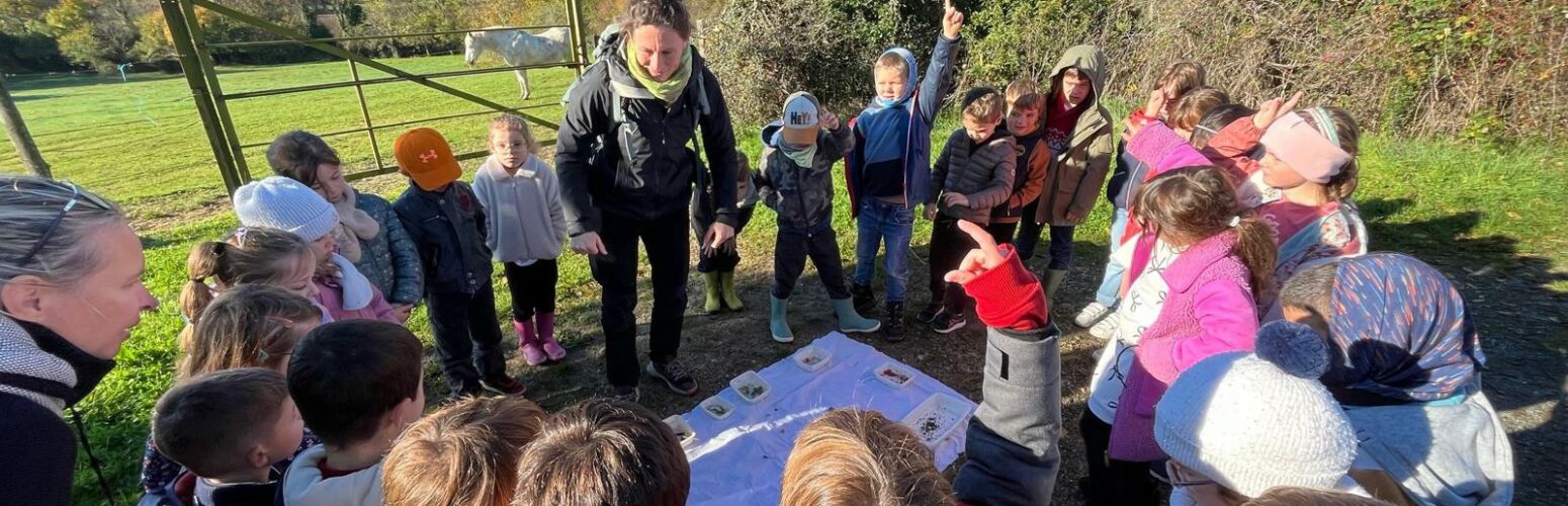 Au cours d’une belle matinée automnale, les élèves de CP ont bénéficié d’une intervention de l’association S’ORTIE (en lien avec la CCVL) pour travailler sur la notion d’écosystème et de biodiversité. A quelques pas de l’école, en pleine nature, les enfants ont appris à différencier le Vivant et le Non Vivant,, ont écouté les chants d’oiseaux et ont créé de petits tableaux avec des éléments de la nature.